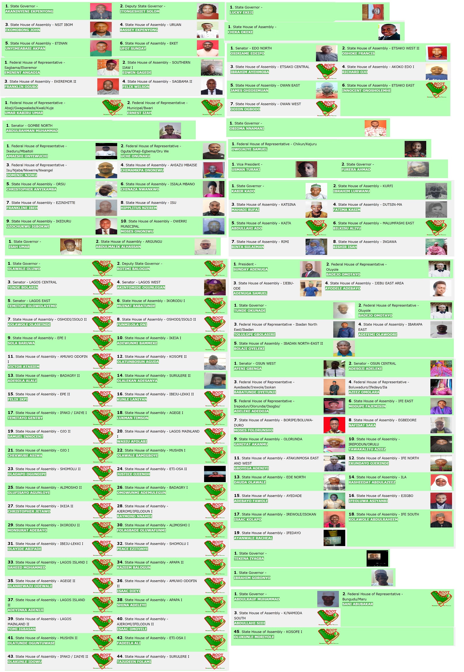 Section 14 of The 1999 Constitution states that “sovereignty belongs to the people of Nigeria from whom government through this Constitution derives all its powers and authority”. The Constitution further stated in this Section that “The Federal Republic of Nigeria shall be a State based on the principles of democracy and social justice”. The principles of democracy and social justice demands that the people renew their democratic commitment every four years through election as contained in The 1999 Constitution. The 2023 General Elections present another opportunity for the people of Nigeria to exercise their sovereignty and elect government that derives all its power and authority through The 1999 Constitution. The BOOT Party is one of the registered political parties inline with The 1999 Constitution and presents its candidates including President and other positions for the 2023 General Elections.